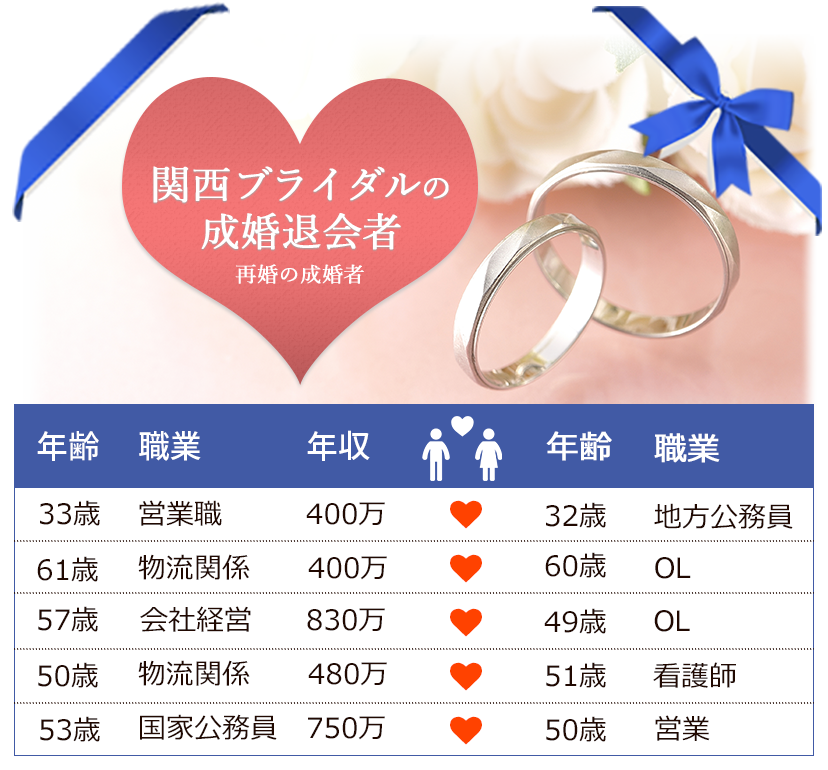 - 以前の結婚は、失敗ではなく、お相手選びに間違いがあったのではないでしょうか?今度は、私たちと一緒にお相手探しをして、幸せな出逢いを見つけましょう。